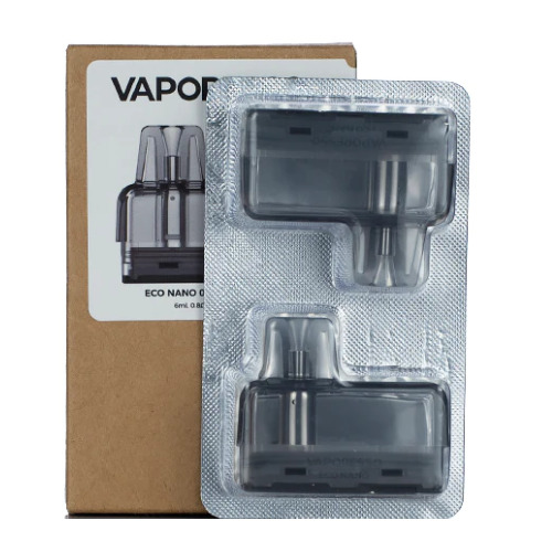 The Vaporesso ECO Nano Replacement Pods, featuring a 6mL fill capacity, integrated 0.8ohm mesh coil, and is bottom filled behind a silicone stopper.